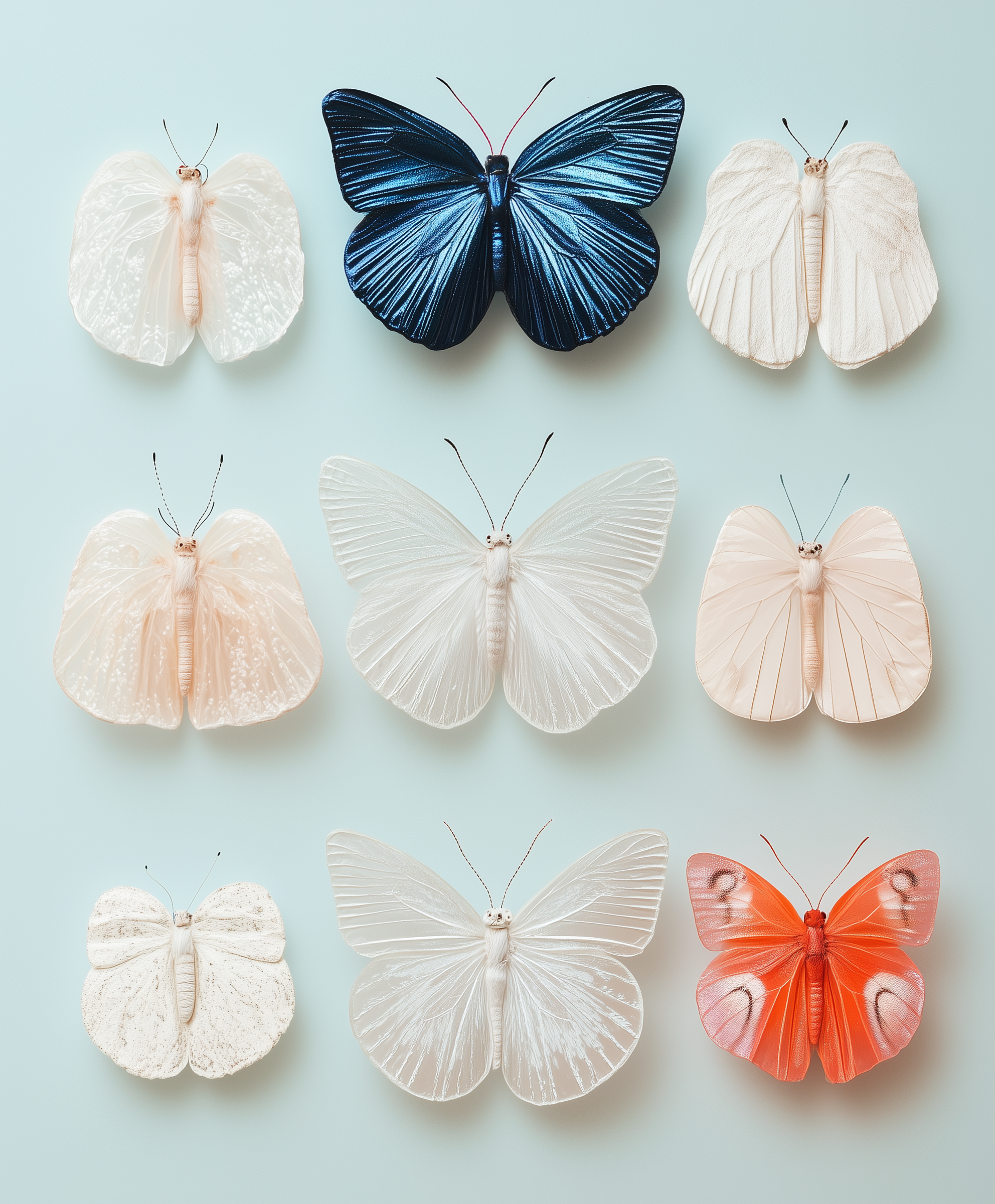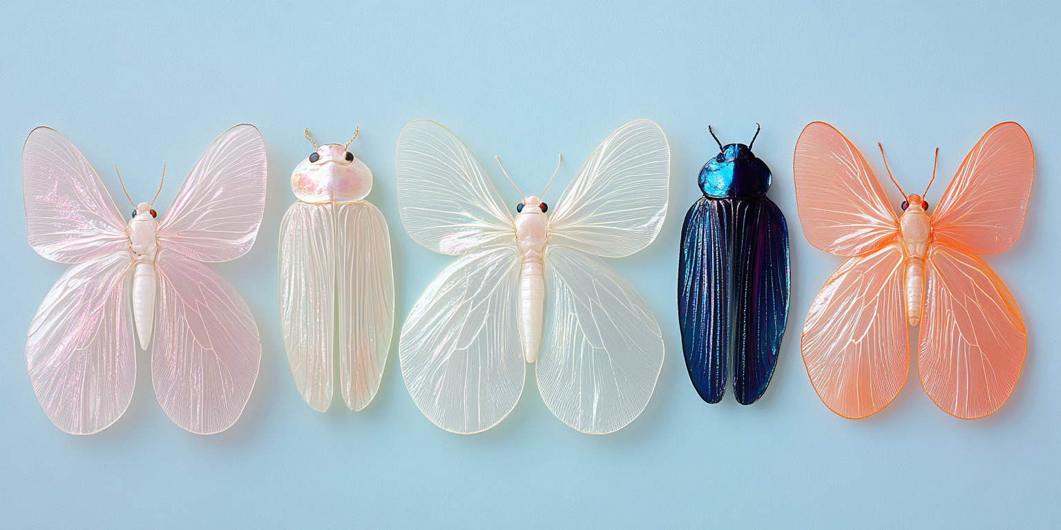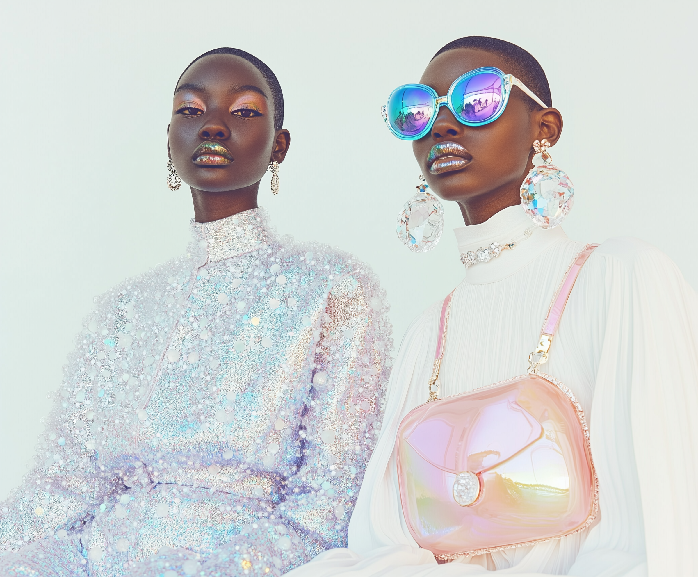 In a world of soft light, iridescent hues shimmer across polished surfaces, blending pastels with subtle reflections. Sculptural forms, delicate accessories, and whimsical creatures glow with an ethereal charm, each exuding quiet sophistication.